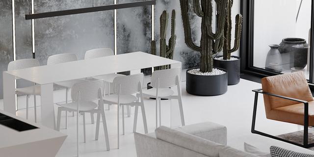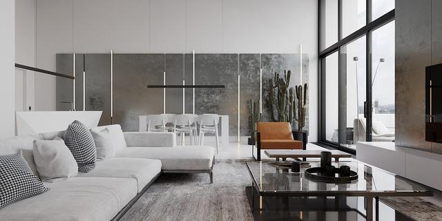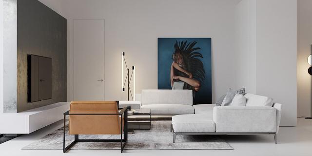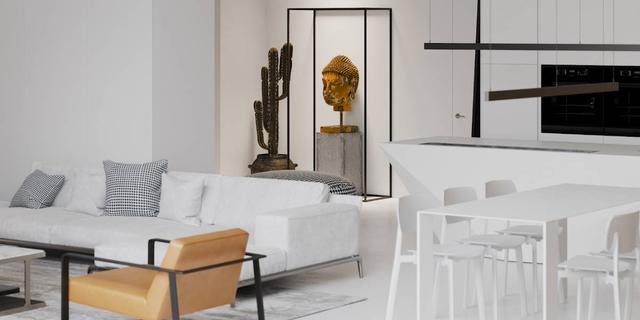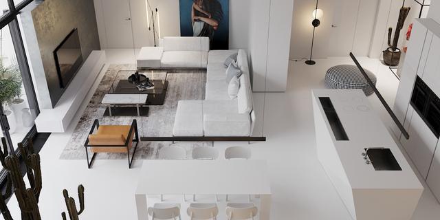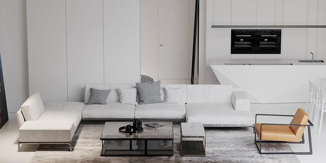 白色的沙發、白色的儲物柜和白色的廚房讓一切變得簡單。