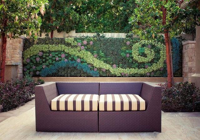 這座雙人房是個垂直花園。多彩多汁植物創造了一幅美麗的圖畫,如果畫在上面,就不會給人留下太多印象。