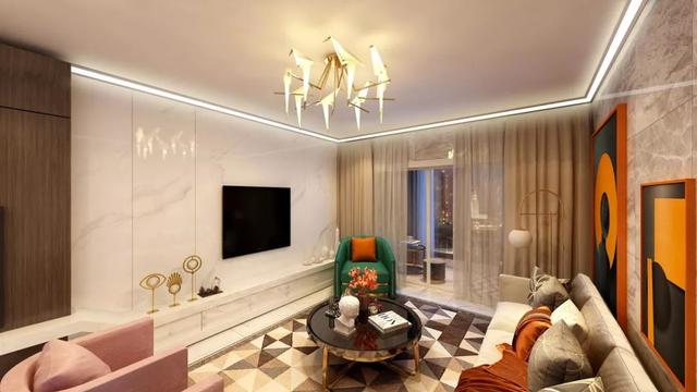 好在現在有了更省心的解決方案,就是使用發光頂角線來做主照明,再配合中央的主燈和落地燈或者臺燈來進行裝飾(如圖6和圖7)。這樣做好處就是在不吊頂的前提下,確保了空間充足均勻的光照。這樣就可以放心大膽地選用美輪美奐但亮度不足的主燈了,再配合裝飾性的落地燈或者臺燈,整個客廳就可以獲得棒棒噠的燈光效果了。