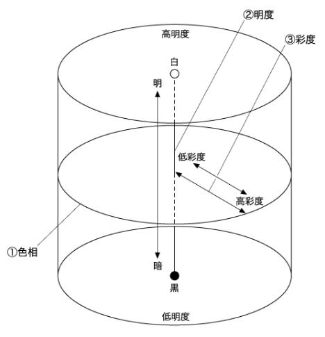在三維空間中表示,該色相,亮度,色彩飽和度,其由三維的三個屬性的定位和“色立體”顯示系統的顏色。彩色固體上的彩色位置由這三個屬性決定。相反,如果您查看顏色實體上的顏色,您可以看到該顏色的色調,亮度和飽和度。