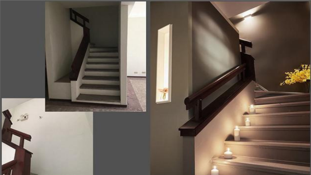 藉由色彩計畫與分割(連接樓上樓下的色彩及分割邏輯),讓空間變得連續且完整,也一同整理了二樓開口語匯不同的問題。另外灰色的梯間配上燈光設計,表達了光影的戲劇性。我們無意藉由充足的照明及較好的受照面(例如白墻)來解決采光問題,造成梯間不好清潔、保養及缺乏設計感的問題,畢竟梯間并非久待之處,對于光線的感受時間非常短。反而是利用原來暗房的空間因其采光不足的缺點成為正面的設計因子,采光程度則以足以達成安全與清潔要求即可。