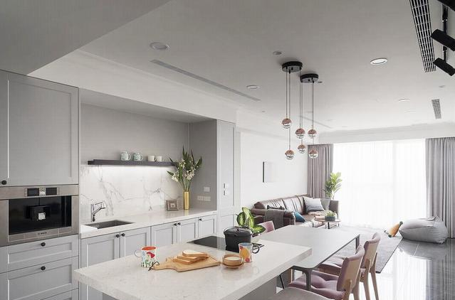 入門玄關(guān),即可見整齊有序的廚房設(shè)施,既是生活味濃郁的家居場域,亦可化身為親友同歡的party現(xiàn)場。