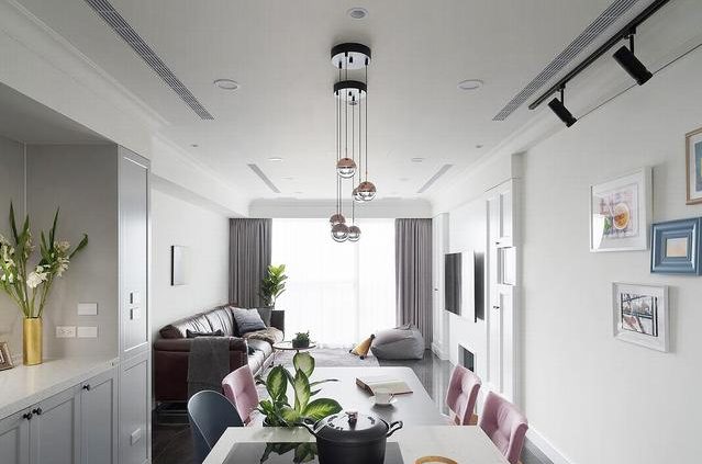 此案的房子為學(xué)區(qū)房,為了孩子能有更好的教育,四口之家從340平的別墅區(qū)搬遷至不到90平不到的電梯大樓中,裝修設(shè)計師將屋主喜愛的黑、白、咖啡色做為空間基調(diào),以淺色系墻面搭配深色進口地磚營造沉穩(wěn)氛圍,同時凸顯屋主的家具、收藏及飾品特色。