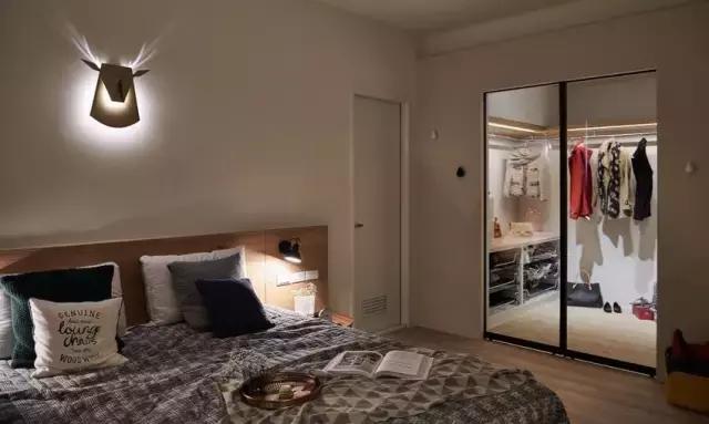 次臥里一個大大的定制衣柜,中間是抽屜,抽屜上方做空設計。
