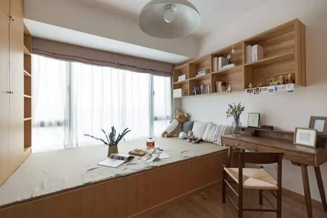 這是次臥室的效果,次臥室里面做了榻榻米,做榻榻米的原因也是為了實用性,既可以當(dāng)床來使用,也可以放置更多的衣物。