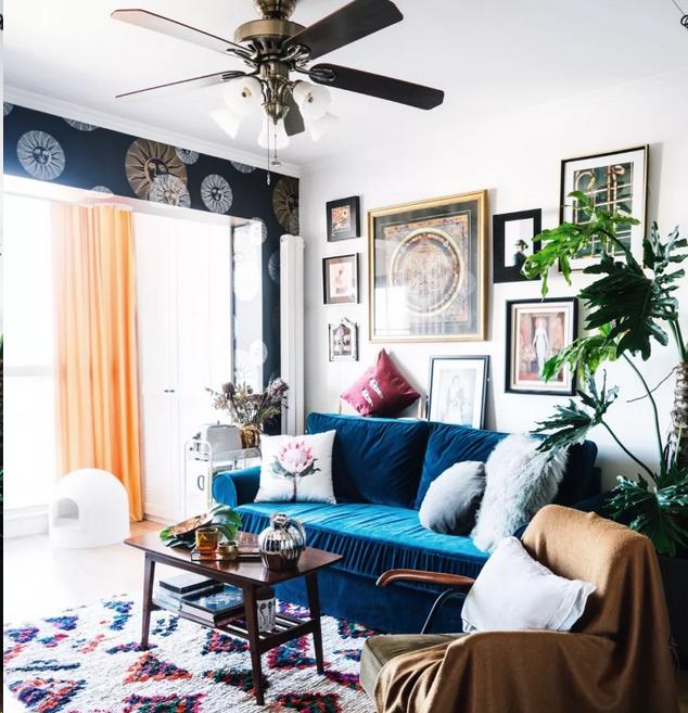 T女士是某網站上「解憂雜貨鋪」的店主,她家的裝修設計和她店里售賣的東西差不多,撞色且混搭,融合了許多風格迥異的元素,但是眾多元素在T女士的安排下,居然也有著異域風情的獨特味道,作為戲精的小編看到了就想演戲索性直接就跳起了民族舞!
