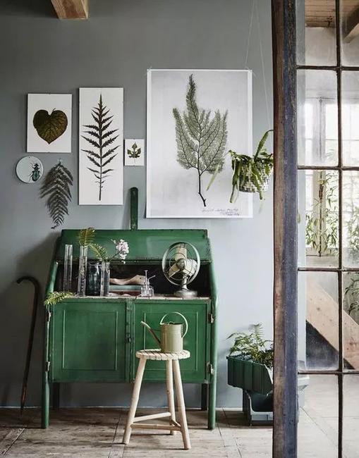 復(fù)古式風(fēng)格的房間,用植物來(lái)裝飾,也給人耳目一新的感覺(jué)。