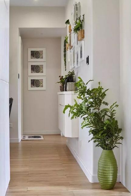 玄關(guān)處也是很多人考慮重點(diǎn)裝飾的地方,其實(shí)放上幾株盆栽,用綠色點(diǎn)綴房間就很好啊,特別是盆栽配合插畫,效果出奇的好。