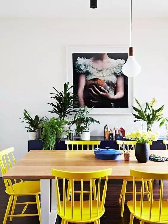 作為小件的物品,椅子在家中所受到的關(guān)注是極微的,倘若加上亮黃,就會會變得搶眼了許多,真真是奪走了不少戲份。