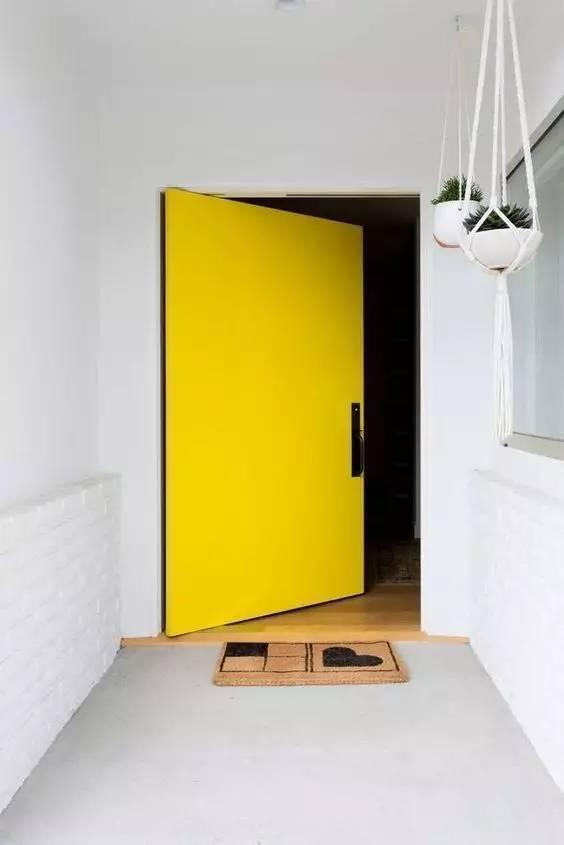 作為空間之中的穿梭之域,門的設(shè)置會影響整體的視覺感,黃色的門與簡單的白墻相結(jié)合,讓整個(gè)空間更具色彩美。