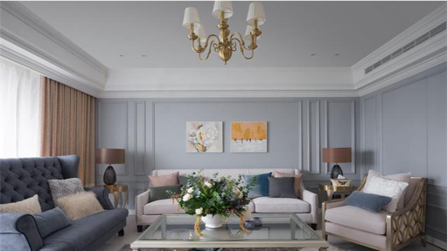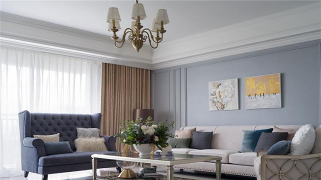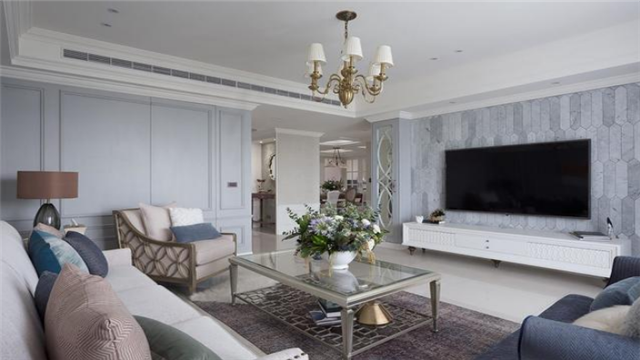 首頁 裝修流程 裝修設計 145平新古典風家居設計 淡藍色的背影墻盡顯優雅