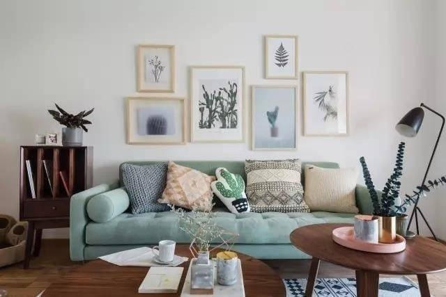 這是沙發背景墻的效果,6幅簡單的工藝掛畫,都是自己做的,然后在網上買的木質框,自己表的,很清雅,有一種淡淡的北歐風格。淡青色的懶人沙發看著就很舒服。旁邊的黑色落地射燈也有一種很優雅的感覺。