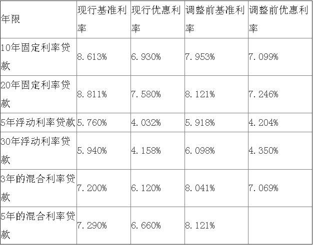年限現行基準利率現行優惠利率調整前基準利率調整前優惠利率