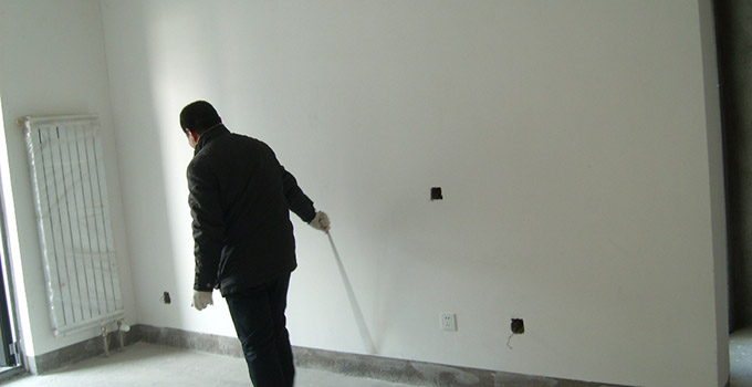 3)、檢查墻面的膩子,是否是防水膩子,可以帶瓶礦泉水,往墻上潑水,用手去摸,看手上是否有泥漿,沒有的話證明墻面的耐水膩子合格。