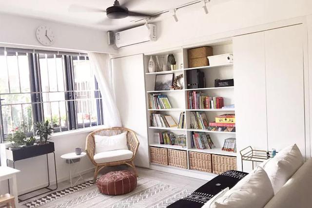 客廳是采用北歐風格設計,放置了地毯、編藤收納籃、簡潔的邊幾等等,讓整個客廳充滿了濃濃的北歐風情。閑暇時,一個人舒舒服服的躺在椅子上,書茶為伴,輕松享受愜意的閑暇時光。