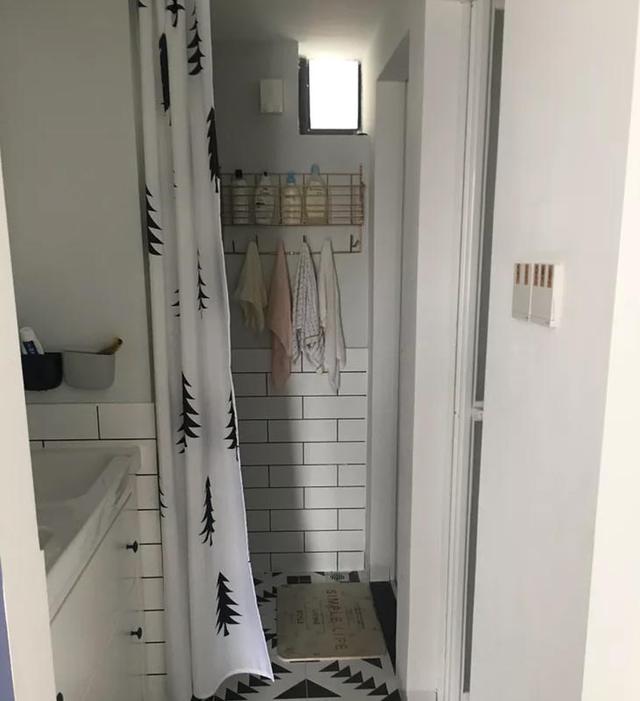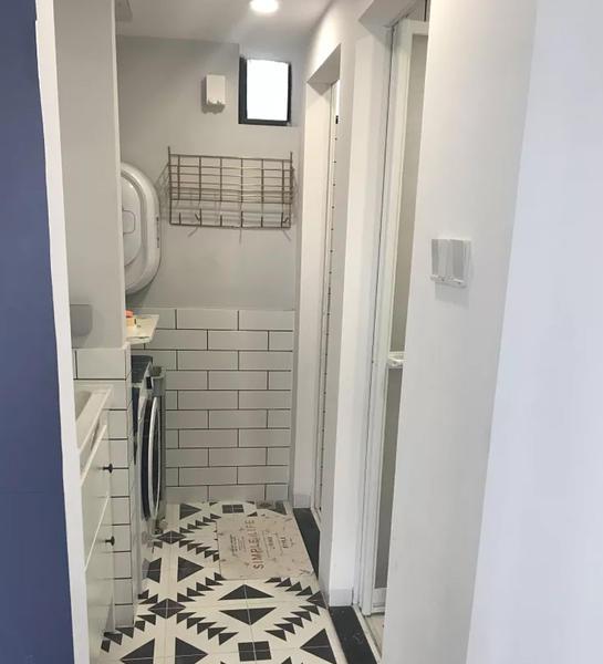 她家裝修最重要的就是廁所的設計了,將5㎡廁所做了“4分離”設計。我們可以看到右邊是有兩個門洞,里面分別是獨立的坐便區和獨立的淋浴房,左邊也有兩個區域,分別是洗衣區和洗漱區。