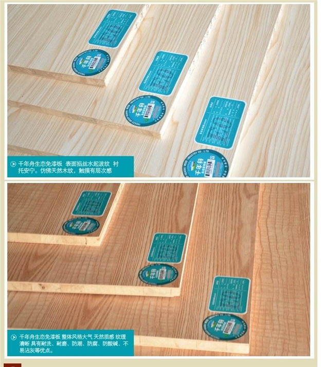 1、千年舟細木工板E1級1.8厘米綠色環保板材 165.00元;
