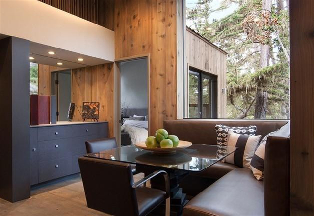 這張長(zhǎng)凳式的早餐角設(shè)計(jì)(上圖)非常舒適。也許這是整個(gè)空間的木材選擇。也許這是燈光和柔軟枕頭的選擇。或者是那扇暴露在外的窗戶。這可能都是上述情況。完全內(nèi)置的現(xiàn)代Nook堅(jiān)持極簡(jiǎn)主義。注意桌子和長(zhǎng)椅上沒有腿。
