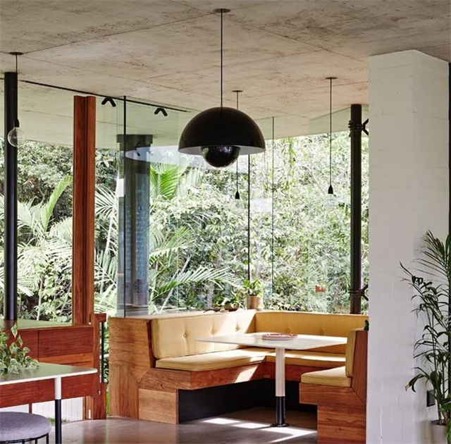 借用一個(gè)三面長(zhǎng)凳早餐角的想法,從這個(gè)熱帶家園天堂由業(yè)主,建筑師和室內(nèi)設(shè)計(jì)師從澳大利亞設(shè)計(jì)。小方桌直接用螺栓固定在鋼腿上的混凝土地板上,長(zhǎng)椅由一些異域木材制成,與室內(nèi)其他部分相匹配。這個(gè)角落甚至有自己的小吊墜懸掛在混凝土天花板上。整個(gè)感覺就像是一個(gè)度假勝地,因?yàn)槟阌幸粋€(gè)小的美麗的地方來(lái)在早上吃早餐。