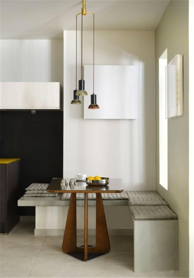 內(nèi)置的尖角可能是最受歡迎的類型。他們可以做為一個(gè)角落設(shè)計(jì)與L形長(zhǎng)凳,提供一個(gè)更豪華,餐廳般的感覺,或作為兩個(gè)長(zhǎng)凳設(shè)計(jì),更休閑,快餐麥當(dāng)勞般的感覺。雖然你通常需要更多的空間,一個(gè)角落角落,你可以設(shè)法適應(yīng)另一個(gè)在一個(gè)小利基。這兩個(gè)都是DIY項(xiàng)目的共同想法,但是如果你想要一些非常特別的東西,那么你可能想簽一個(gè)專業(yè)的設(shè)計(jì)師。讓我們來(lái)看一些現(xiàn)代設(shè)計(jì)的例子。