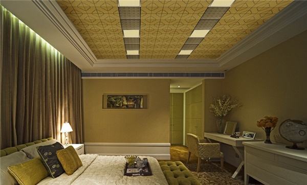 4.配色:頂面色彩最好不超過三種,顏色不能比地板深。建議同一空間用一種花色紋理圖案,盡量與臨近的空間風(fēng)格相符,與同空間下其他材料相配。但建議廚房吊頂用冷色調(diào),廚房油煙多、溫度高,用冷色調(diào)去中和一下,給人寬敞、涼爽感;衛(wèi)浴吊頂則建議用暖色調(diào),給人溫馨、安全感,讓人放松。