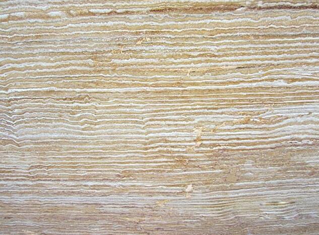 各類一般有羅馬洞石、伊朗洞石和產土耳其等地的洞石。羅馬洞石顏色較深,紋理較明顯,材質較好;健康洞石顏色較淺,質地酥松,強度較差。該類石材可以被拋光,具有明顯的紋理特征,彎曲強度呈各向異性,垂直紋理方向(強向)的彎曲強度在6MPa左右,部分超過7MPa;平行紋理方向(弱向)的彎曲強度為4MPa左右,材質和花紋不同有時在5MPa左右,有時有極低的不超過MPa;亂紋方向介于其中,此時的紋理在厚度方向。