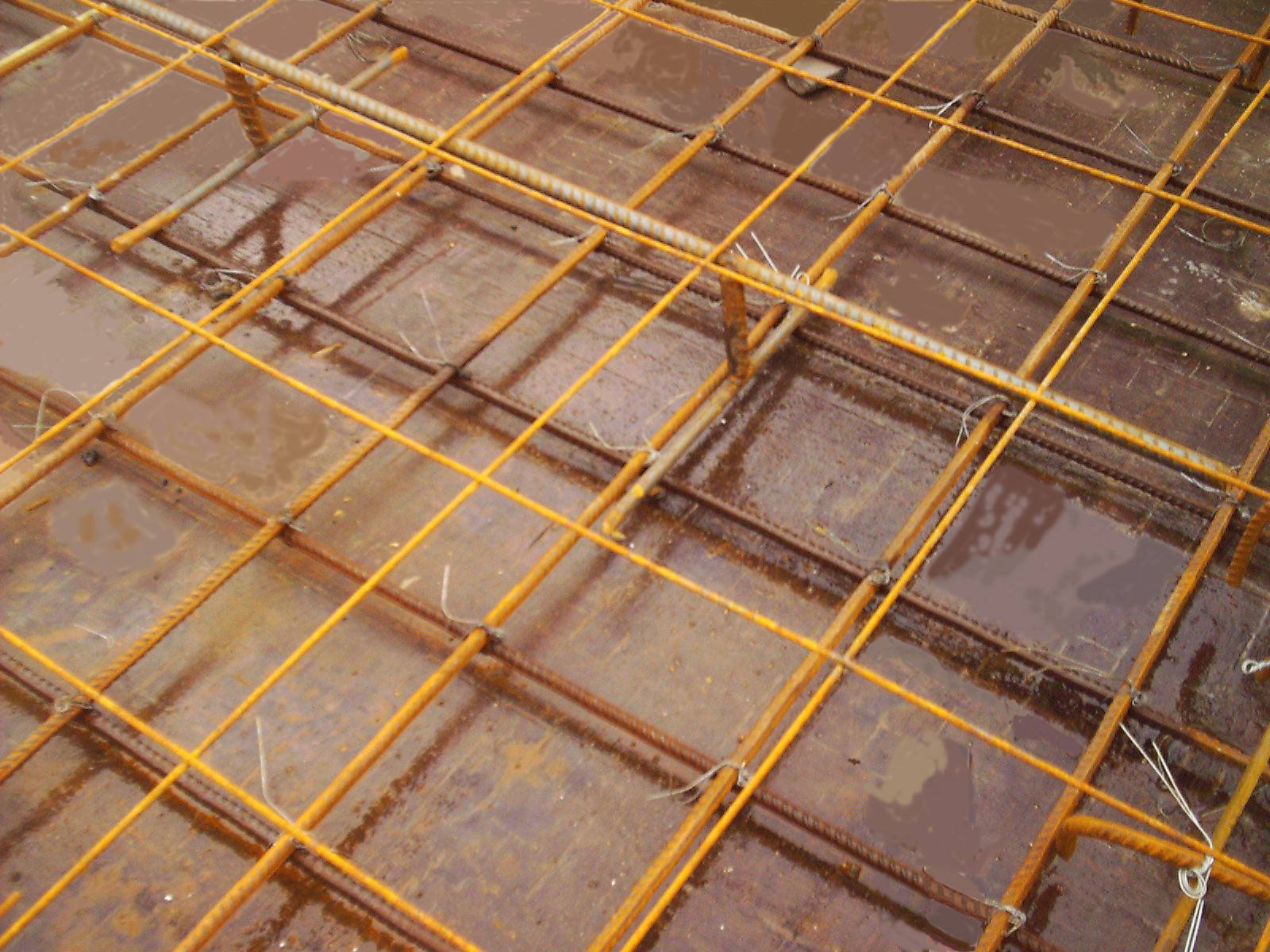 當(dāng)基礎(chǔ)厚度較大(大于?800MM)一般不宜用馬凳,而是用支架更穩(wěn)定和牢?固。鋼筋馬凳一般圖紙上不注,由技術(shù)員在施工組織設(shè)計(jì)中詳細(xì)標(biāo)明其規(guī)格、長(zhǎng)度和間距,通常馬凳的規(guī)格比板受力筋小一個(gè)級(jí)別,如板?筋直徑?12?可用直徑為?10?的鋼筋做馬凳,當(dāng)然也可與板筋相同。縱向?和橫向的間距一般為?1?米。不過具體問題還得具體對(duì)待,如果是雙層?雙向的板筋為?8,鋼筋剛度較低,需要縮小馬凳之間的距離。總之馬?凳設(shè)置的原則是固定牢上層鋼筋網(wǎng),能承受各種施工荷載,確保上層?鋼筋的保護(hù)層在規(guī)范規(guī)定的范圍內(nèi)。?板中放置馬凳時(shí)應(yīng)避開梁等板支座構(gòu)件。基礎(chǔ)底板大于?800MM?時(shí)?應(yīng)采用角鐵做支架,支架立柱間距一般為?1500MM,在立柱只需設(shè)置?一個(gè)方向的通長(zhǎng)角鐵,這個(gè)方向應(yīng)該是與上部鋼筋最下一皮鋼筋垂直,間距一般為?2000?米。?按照施工組織設(shè)計(jì)來計(jì)算是沒有問題的,但是馬凳鋼筋的直徑不應(yīng)該說比被支持的鋼筋小一個(gè)型號(hào),?因?yàn)槿绻恢С值呢?fù)彎矩鋼筋是?8mm?的,要采用?6.5mm?的鋼筋作為馬凳筋就太細(xì)了,它不能保證負(fù)彎矩鋼筋不會(huì)被施工工人偶爾踩壞。