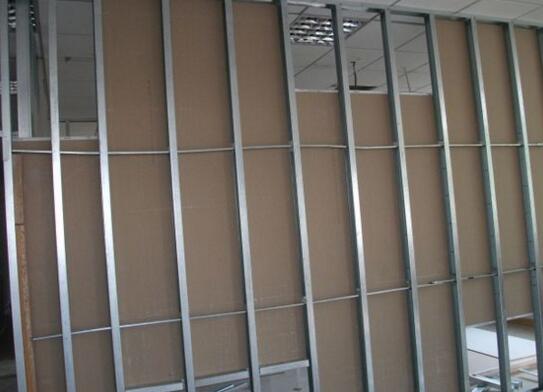 3、面板一般用石膏板,硅酸鈣板.隔聲方面采用填充材料:隔聲綿等;與龍骨連接用自攻螺絲固定;