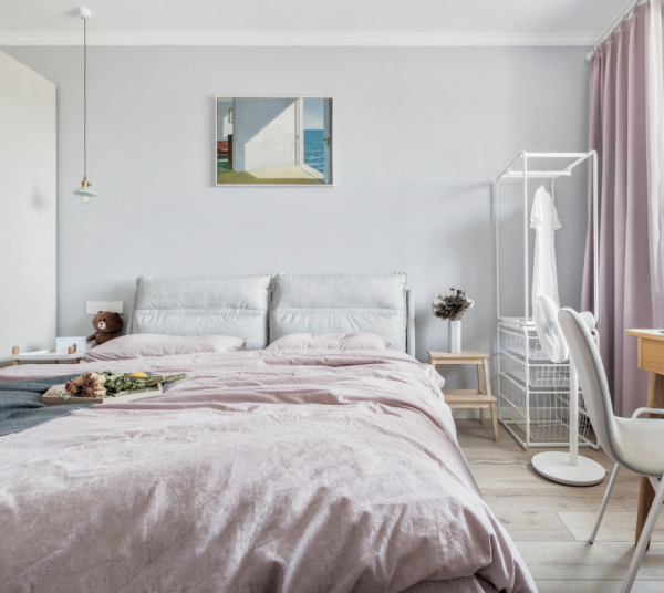 寧靜的灰白色,樸素的木質(zhì),優(yōu)雅而清新的家,像一個(gè)沒有約束的容器,容納著生活的各種,舒緩疲勞,也充滿了歡樂。