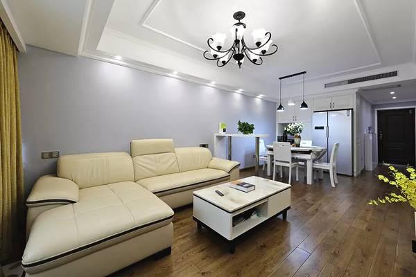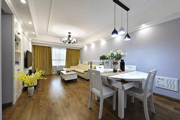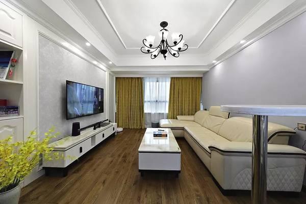 窗簾選擇了亮色顯得客廳溫馨明媚一點,搭配上木質(zhì)地板看起來效果好極了。