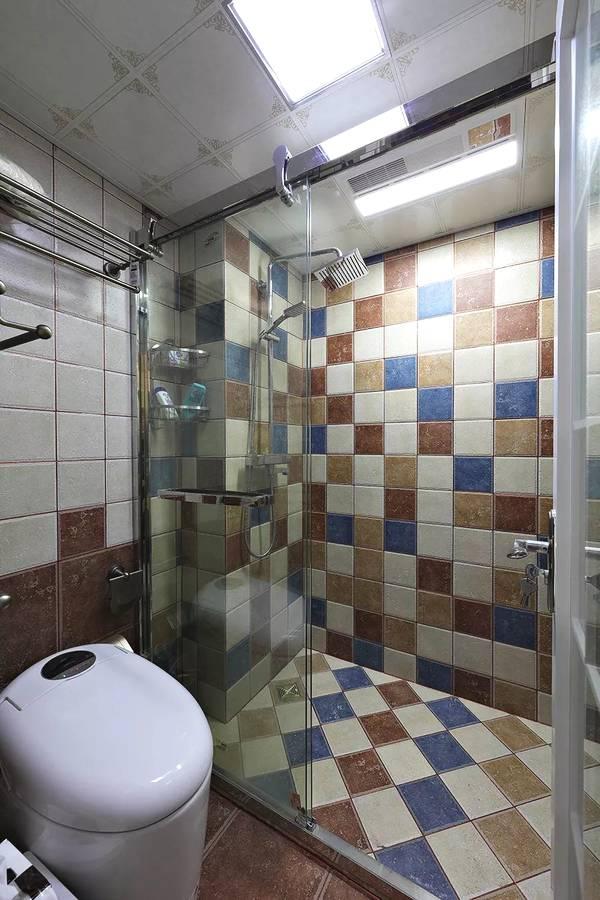 玻璃門干濕分離,彩磚時尚有趣,連廁所都如此完美,住在這樣的新家里幸福感真是太高啦!