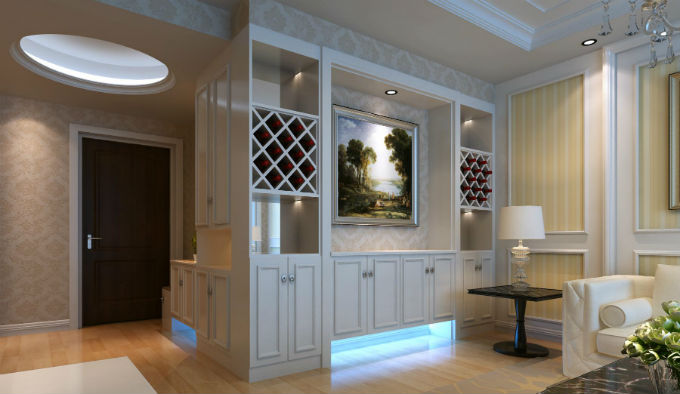 從一個玄關酒柜的立面圖,我們可以看到,酒柜的形式,及周圍的一些設計,比如地面的鵝軟石鋪設,而相對的,預算單玄關項,就應該有酒柜的材料和費用,以及鵝軟石的費用,如果沒有那就是漏項。