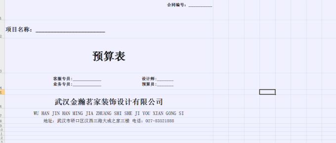 需要有裝修公司名稱、聯系電話、聯系地址、客戶名稱、聯系電話、施工地址、設計師、預算日期和版本、房型結構。這些是客戶和裝修公司的基本資料,可以基本看出一個裝修公司對預算的重視程度和正規程度。