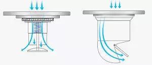 T型地漏大多是永磁鐵結構,利用磁鐵重力平衡的原理,來實現地漏自動開啟與關閉。當水流進入時,地漏密封墊會自動打開,讓水直接流進地漏,待水流完后,密封墊會自動關閉,保證地漏內芯處于完全密封的狀態。
