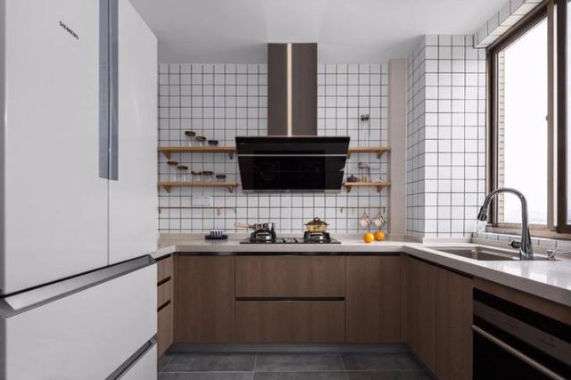 餐廳和廚房動(dòng)線完美。利用空間吊頂做出明顯分區(qū)。廚房的網(wǎng)紅小磚鋪貼墻面,溫馨有活力。
