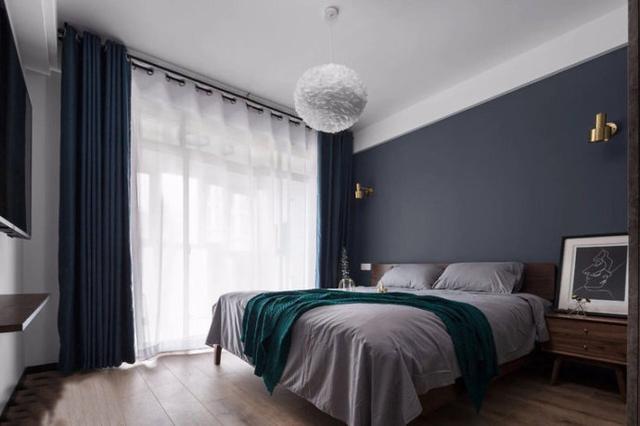 主臥空間以簡(jiǎn)約為主,灰黑白三色搭配木色出現(xiàn),選用藍(lán)色作為軟裝色彩,更加親近自然,由于主臥空間本身有很大的衣帽間,所以在主臥內(nèi)只設(shè)立了床頭柜作為日常收納和物品擺件使用。