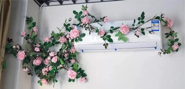 利用一些裝飾品纏繞在管道上,如利用干花,既可以遮掉丑陋的管道,同時(shí)還裝飾了空間。(某寶上有很多空調(diào)管道遮丑的工具)
