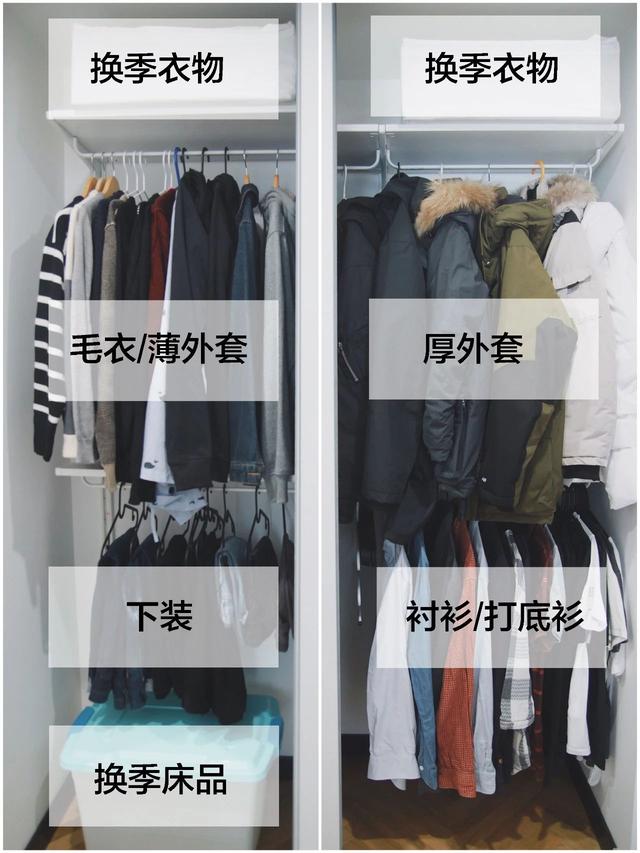 衣柜里面衣物可根據(jù)需求進(jìn)行收納,可以將換季衣物放在柜子上方或最底部,應(yīng)季衣服選擇掛起來(lái),拿取也方便。