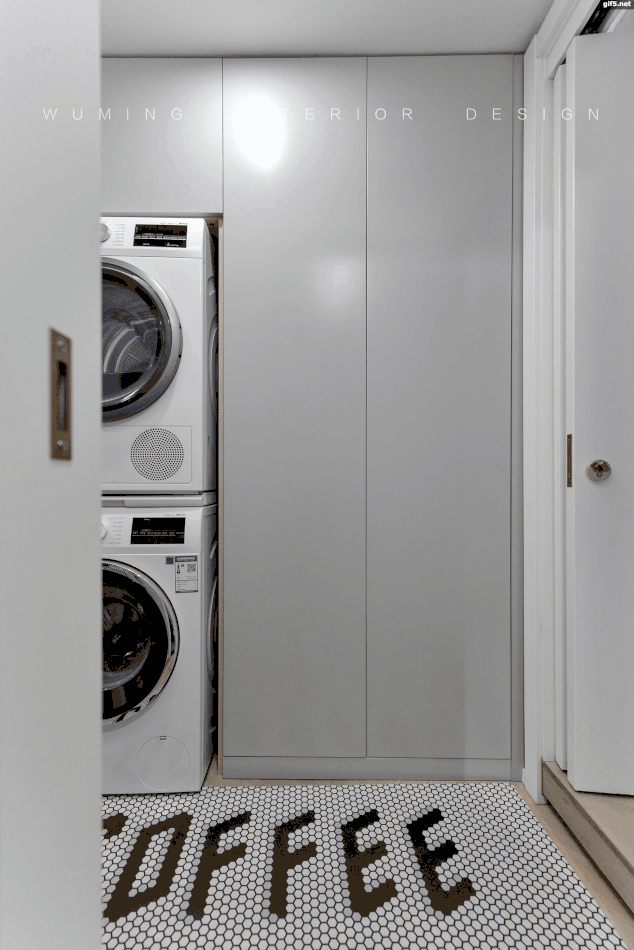 走廊除了做柜體,還能安放洗衣機(jī)、烘干機(jī),三者結(jié)合,讓洗、烘、收一氣呵成,樂(lè)趣十足。
