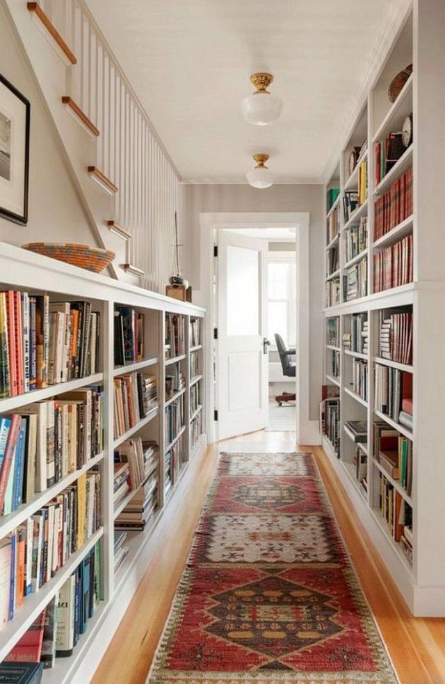 如果你家面積小,沒(méi)有辦法實(shí)現(xiàn)書(shū)房,可以利用家里的走廊變成共享圖書(shū)館,而且走廊是每天的必經(jīng)之地,拿放書(shū)也很方便,可以養(yǎng)成隨時(shí)看書(shū)的好習(xí)慣。