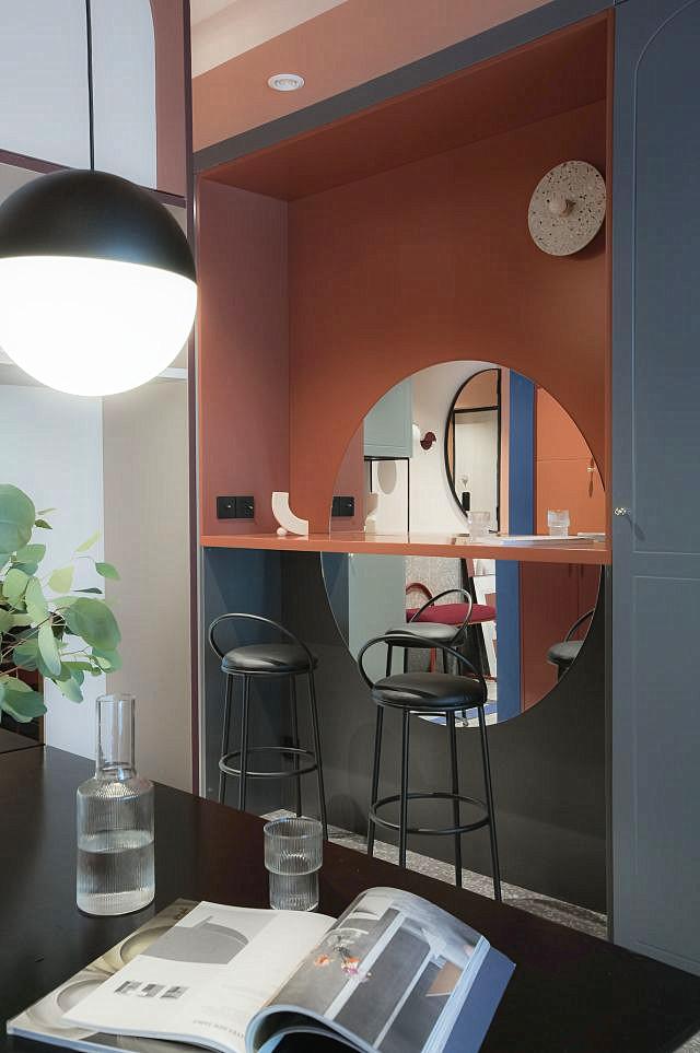 利用走廊修建一個(gè)嵌入式吧臺(tái),兩三個(gè)好友放下手機(jī),端上飲料或酒,大家坐著談天說(shuō)地,懷念舊時(shí)光,暢想新未來(lái)。