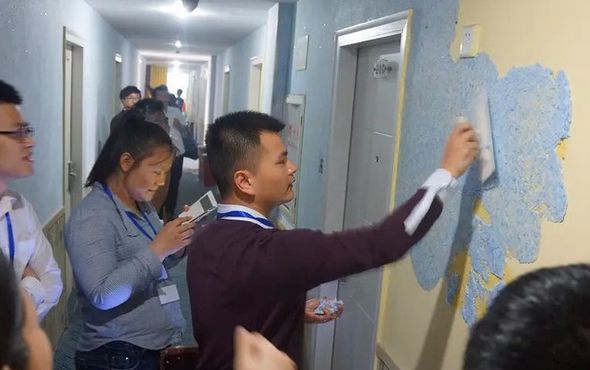 原墻面干凈、平整、底面為白色,具有良好的防水性,便可直接進行墻衣的施工,而不需要任何特別處理即可更新裝飾。對于污損的墻衣濕透鏟掉,用新料在鏟掉部分輥涂一遍,即可與原墻衣結為一體,無銜接縫隙,無修補痕跡。