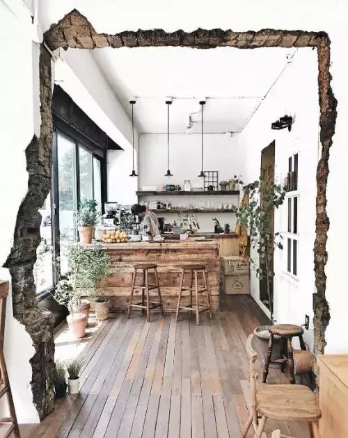 試想一下,家里的墻裂了,該有多崩潰?Emmm... 竟然,看起來還不錯的樣子?假如專業解釋一下,墻面裝修設計B格立馬升級——裸露的深土色砌磚,看似無序地顯隱在白墻里,勾勒出粗糙而曲折的輪廓,反倒顯得有些別致。不完美、未完成、非永存,這種頗具原生感的“殘缺式設計”,不經意間,自然流露出侘寂的美學氣息。
