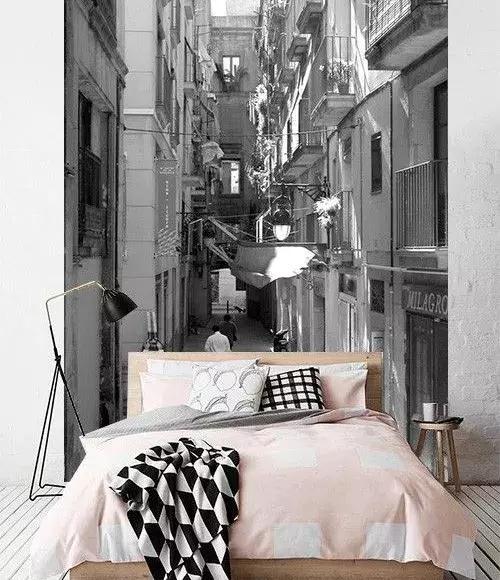 尋常人家的里弄,空間效果不比帝國大廈差,悠遠的縱深感,還給臥室平添一份安寧的人間煙火氣。