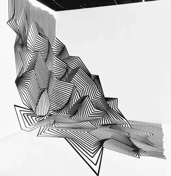 這位就更厲害了:三個軸向的面被一組幾何圖案同時消解,空間錯亂中甚至衍生出了第四維新空間。