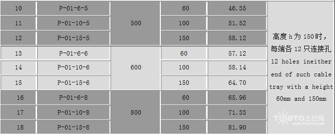 橋架規格型號尺寸表:
