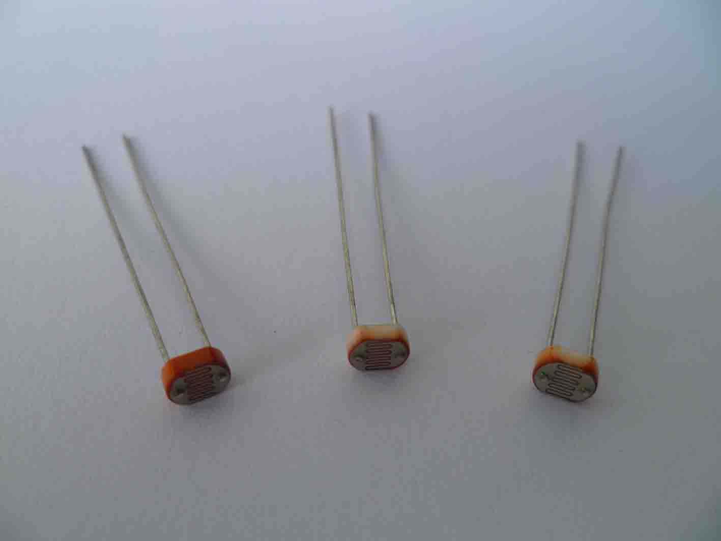 (1)光電流、亮電阻。光敏電阻器在一定的外加電壓下,當(dāng)有光照射時(shí),流過(guò)的電流稱為光電流,外加電壓與光電流之比稱為亮電阻,常用“100LX”表示。