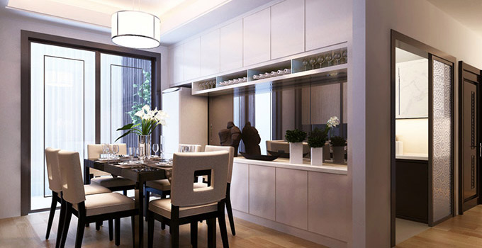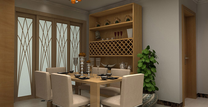 由于空間的規(guī)劃,餐廳大多與廚房、客廳一體,這樣的空間規(guī)劃就要求餐廳與客廳和廚房要有一定的東西進(jìn)行隔斷??梢赃x擇不同的吊頂設(shè)計(jì),不同的墻面顏色以及不同的軟裝飾進(jìn)行區(qū)分。既能起到很好的隔斷效果,還能裝飾餐廳。
