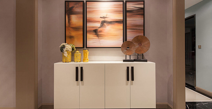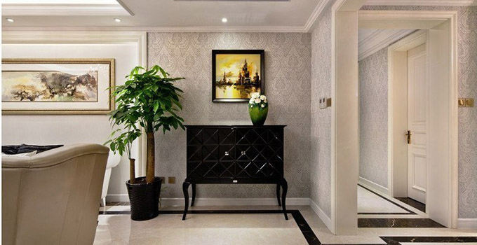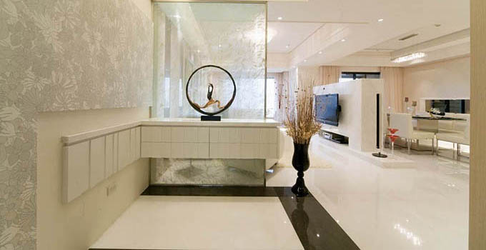 現(xiàn)代簡約玄關(guān)設(shè)計:通透的采光加上光亮的大理石,讓玄關(guān)變得十分的明亮,一個儲物柜加上一些簡單的裝飾品,寬闊的玄關(guān)十分的簡潔,但小細(xì)節(jié)變化,讓它富含著吸引力。