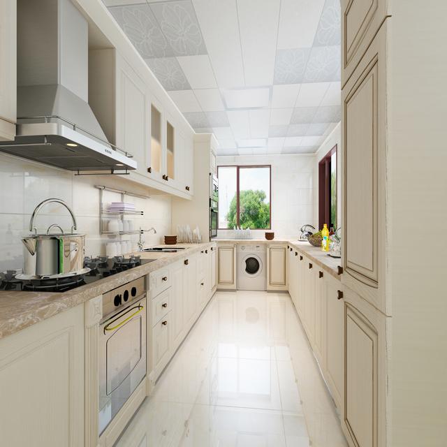 鋁扣板通常被用在廚房和衛生間吊頂中,是以鋁合金板材為基底,通過開料,剪角,模壓成型得到一種板材,鋁扣板表面會使用各種不同的涂層進行加工,所以樣式很多,而且不同的涂層也給予了板材更多實用性能。